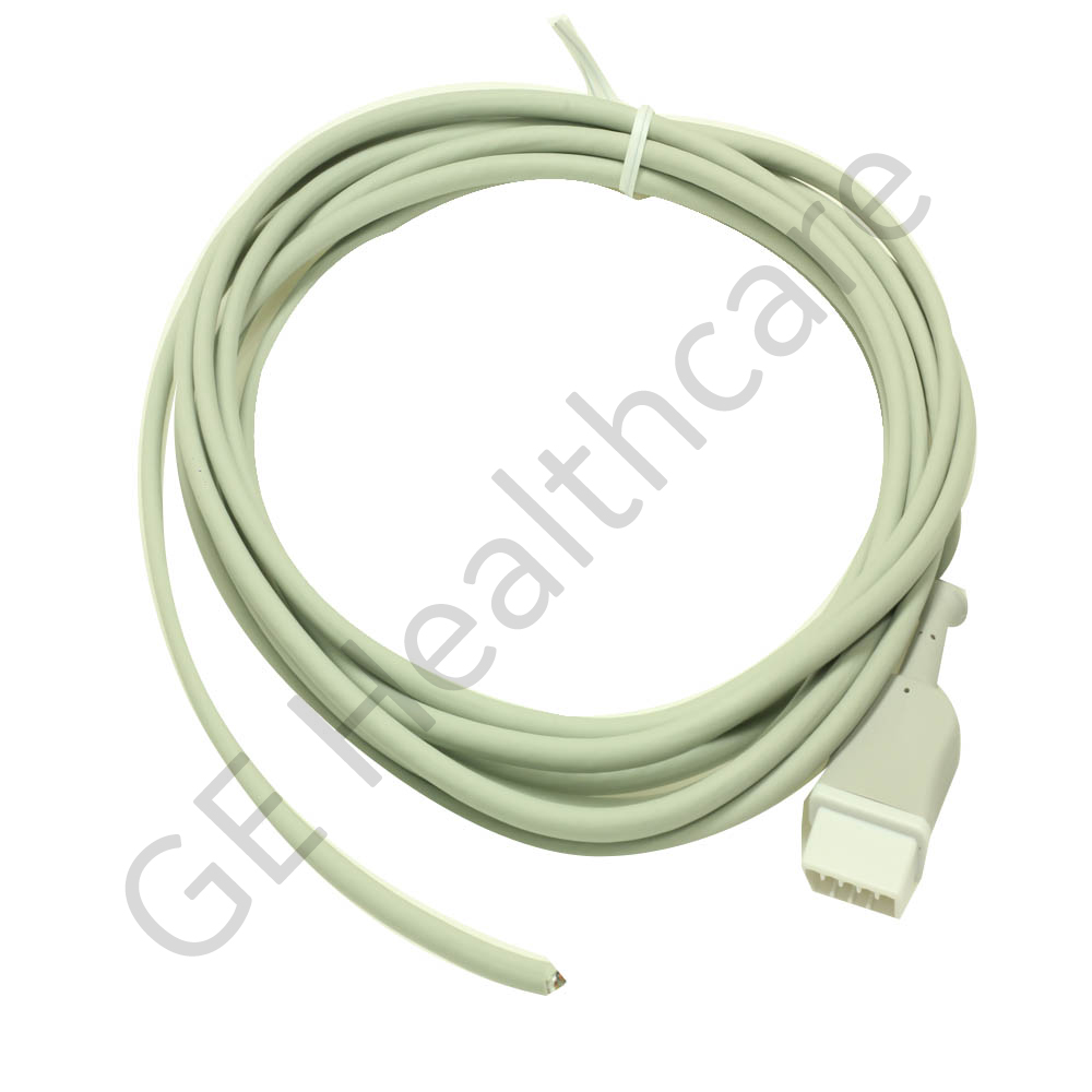 The Cable Assembly DS1 Sync to UNTERM - 15ft is a cable that is a specially designed part used to connect Patient Data Module (PDM) and customer devices. The cable assembly has an unterminated cable at one end and 9-pin DS1-M style connector at the other end. The wire terminations are injection molded with polypropylene and then overmolded with flexible Thermoplastic Elastomer (TPE) to provide for cable strain relief. The purpose of this cable is to provide an ECG & BP synchronization interface from the Patient Data Module (PDM) to third party devices using a proprietary termination as configured by customer. This cable provides two analog output signals (ECG and Arterial Pressure) from the Patient Data Module (PDM) to the corresponding Non-GE equipment. The unterminated end of the cable is configured by the customer using a plug termination that permits signal interface with a third party device. The overmold material Santoprene™ TPV 8281-65MED has excellent chemical resistance, which makes it well suited for many medical applications. The cable assembly offers outstanding flexibility for easier handling.