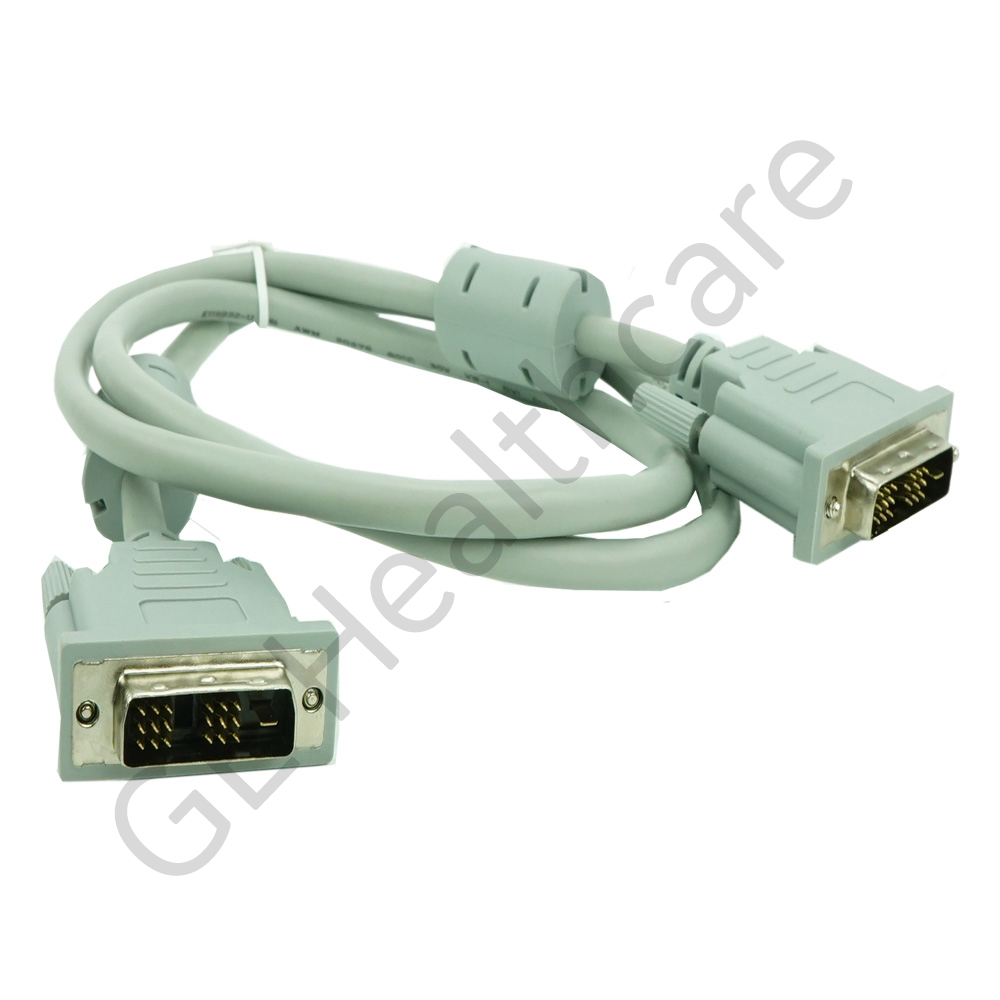 The Video Cable DVI-D(male) - DVI-D(male) in patient monitoring is used as a cable to connect the system with display monitor. The product provides reliable and purely digital connection between the system and DVI-D monitor or projector. The cable includes raw cable with conductors of size 28 AWG and a DVI 18+1 Male connector at both sides. For good fidelity signal transmissions, the assembly relies upon the UL 20276 cables having 28 AWG conductors. A strain relief is provided at both ends for the transition from wire to connector, which helps to relief stress from the cable and prevents it from breaking due to additional stress. Two ferrite cores are included in the cable to prevent electromagnetic and radio frequency interference, which can otherwise cause problems. The cable can be used with GE's CARESCAPE B850 Patient Monitoring Systems. The product will be shipped in suitable packaging to provide adequate protection during transit.