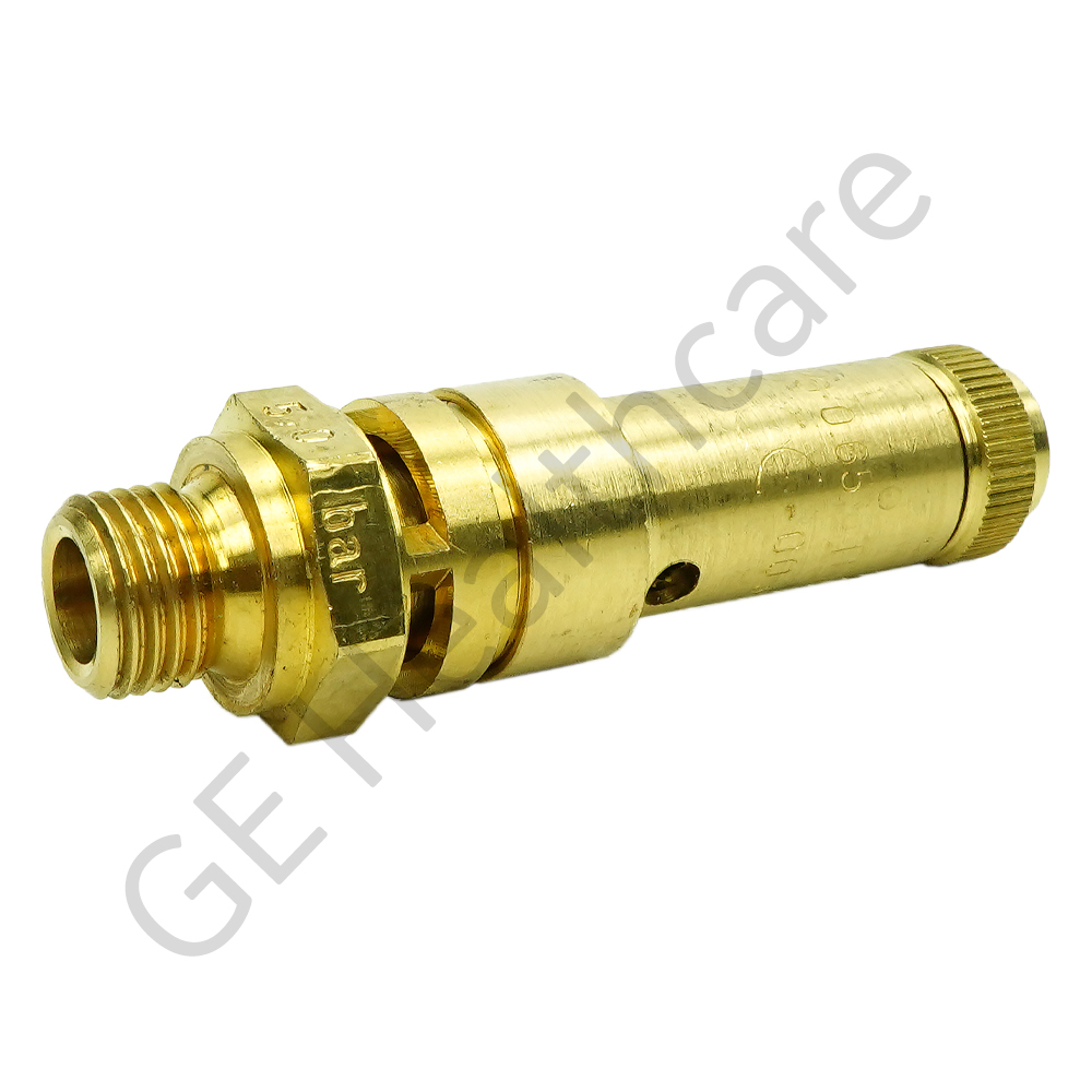 This 73 mm long Pressure Regulator is also known as a Safety Valve. It is a type of valve that automatically starts when pressure on the inlet side of the valve increases to a predetermined pressure (5.0 Bar) which displaces the spring loaded valve disc and discharges the steam or gas pressure. The valve closes when pressure decreases to the prescribed value. This valve has an open type construction and discharges pressure into the atmosphere. The valve comes with a 1/4 inch BSPT thread and hexagonal drive for easy installation. The housing of the valve is made up of brass which enhances its resistance against corrosion. This assembly is designed per DN 8 standards and can operate up to 180 Degrees C. The Pressure Regulator 902511 is compatible with assemblies of GE's PET Cylotron systems.