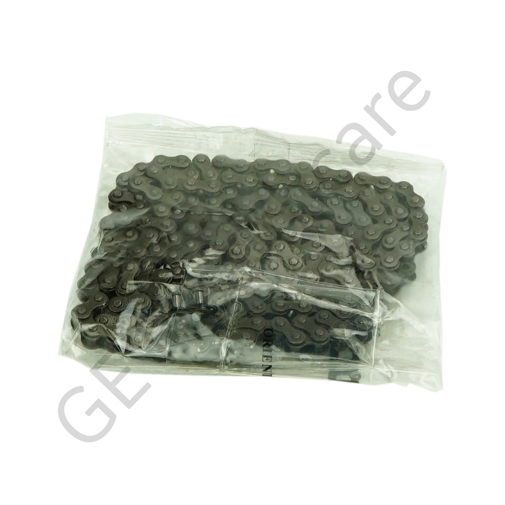There are many types of roller chain, each intended for a specific purpose. This Roller chain is used for transmission of mechanical power through a toothed wheel called sprocket. All sprockets are coupled to both drive and driven shafts and this roller chain acts is a medium for transmission between them which translates into more high transmission efficiency than frictional drives. This 46.5 inches long roller chain includes 186 links and each order comes with one connecting link. This roller chain is made up of high quality material and complies with the applicable industrial standards and thus has high strength. It can be used in Precision Basic, and Legacy Patient Table assemblies of Precision 500D X-Ray systems. The item will be shipped in suitable packaging to give adequate protection during transit.